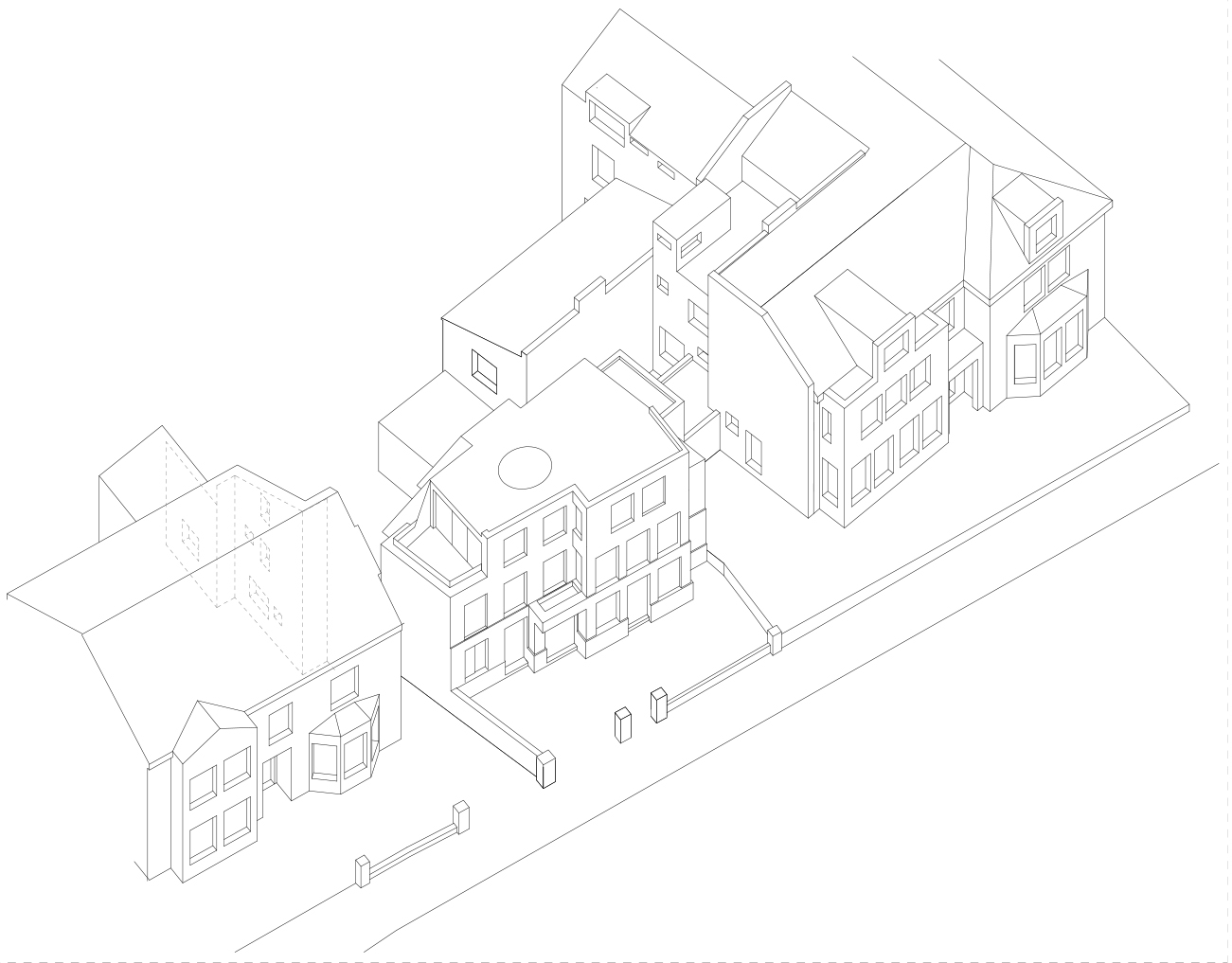 These plots often have awkward shapes, which may be why they were left undeveloped when the original terrace was built. They therefore require a carefully considered architectural design to create comfortable and efficient internal spaces.